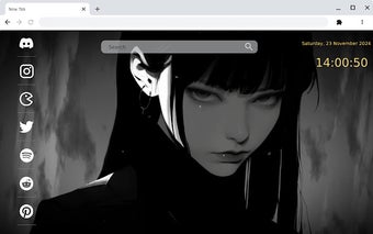 Goth Anime Meisje Monochroom Live Achtergrondis een gratis app voor Chrome, die deel uitmaakt van de categorie 'Add-ons & Tools'.